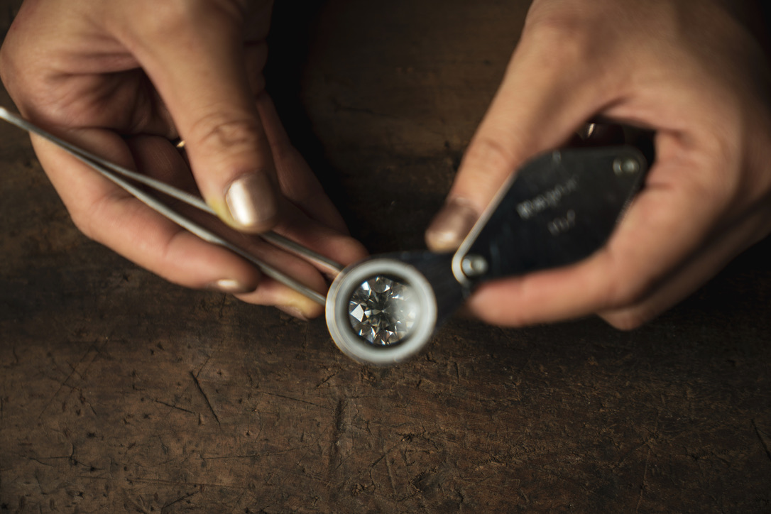 光の入り方・反射・屈折を計算しながら、最も美しく光を返す角度と比率に整える作業は、まさに職人技。